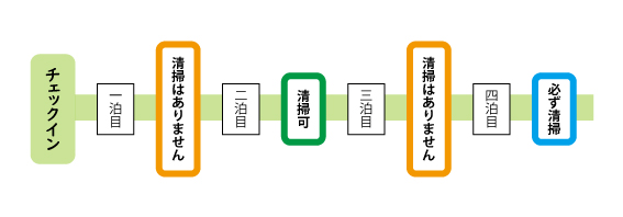 当館の無料客室清掃はご希望がございましたら2泊ごとに行わせておいただいております。